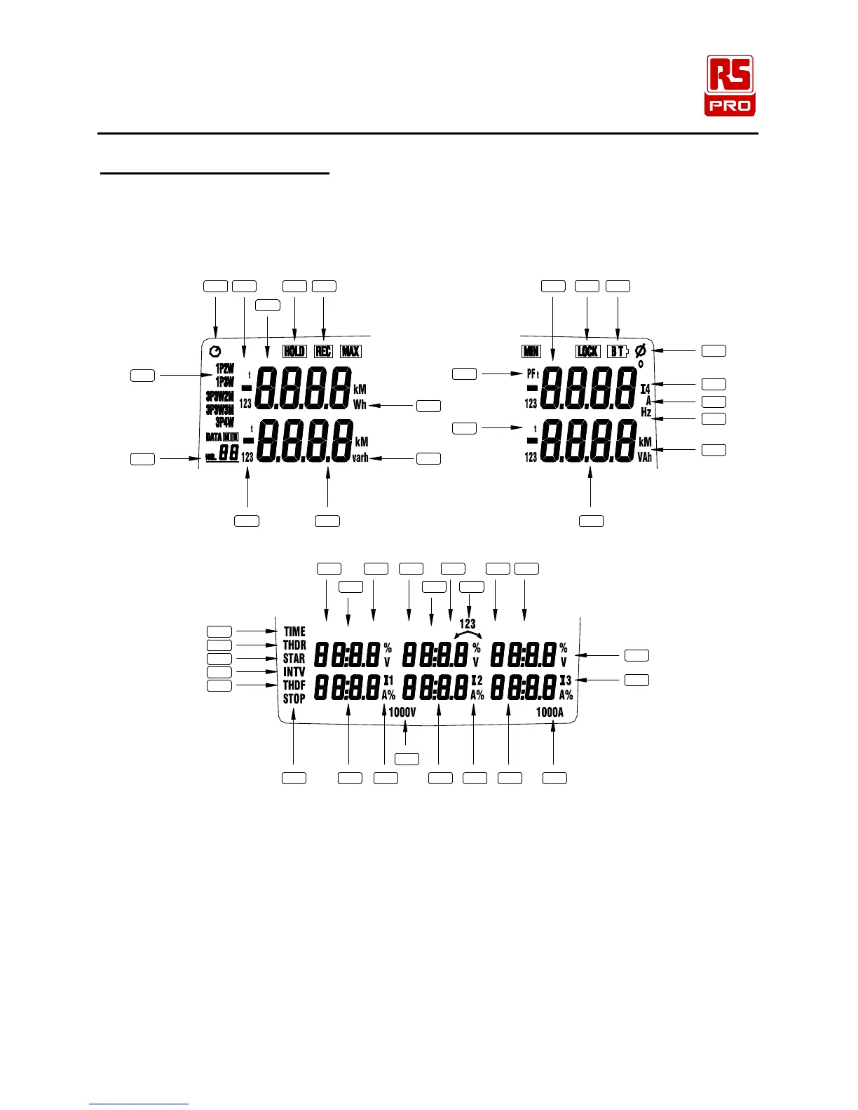 The display format, symbols and the units (V, kV, A, kA, W, kW, MW etc...) are automatically