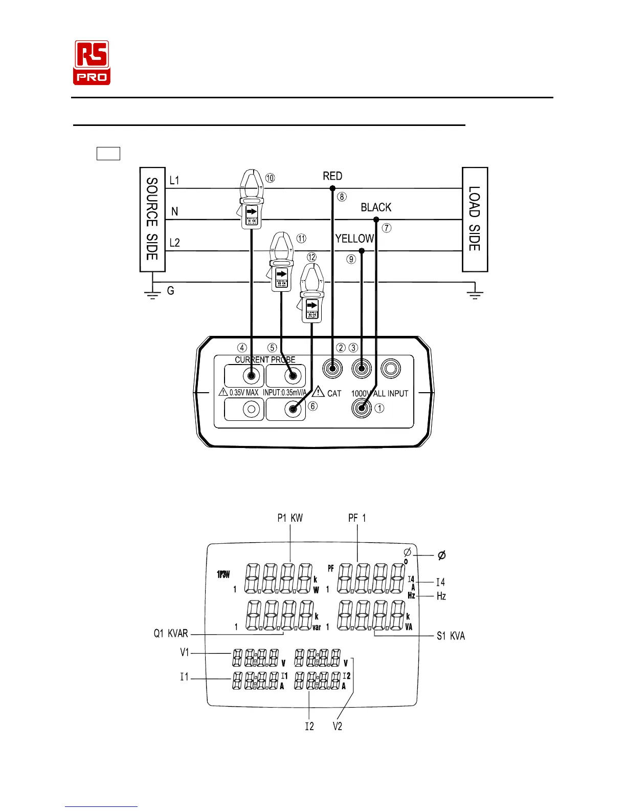 Note: U1 must be connected to the voltage source during the measurement of U2, I1 and I2,