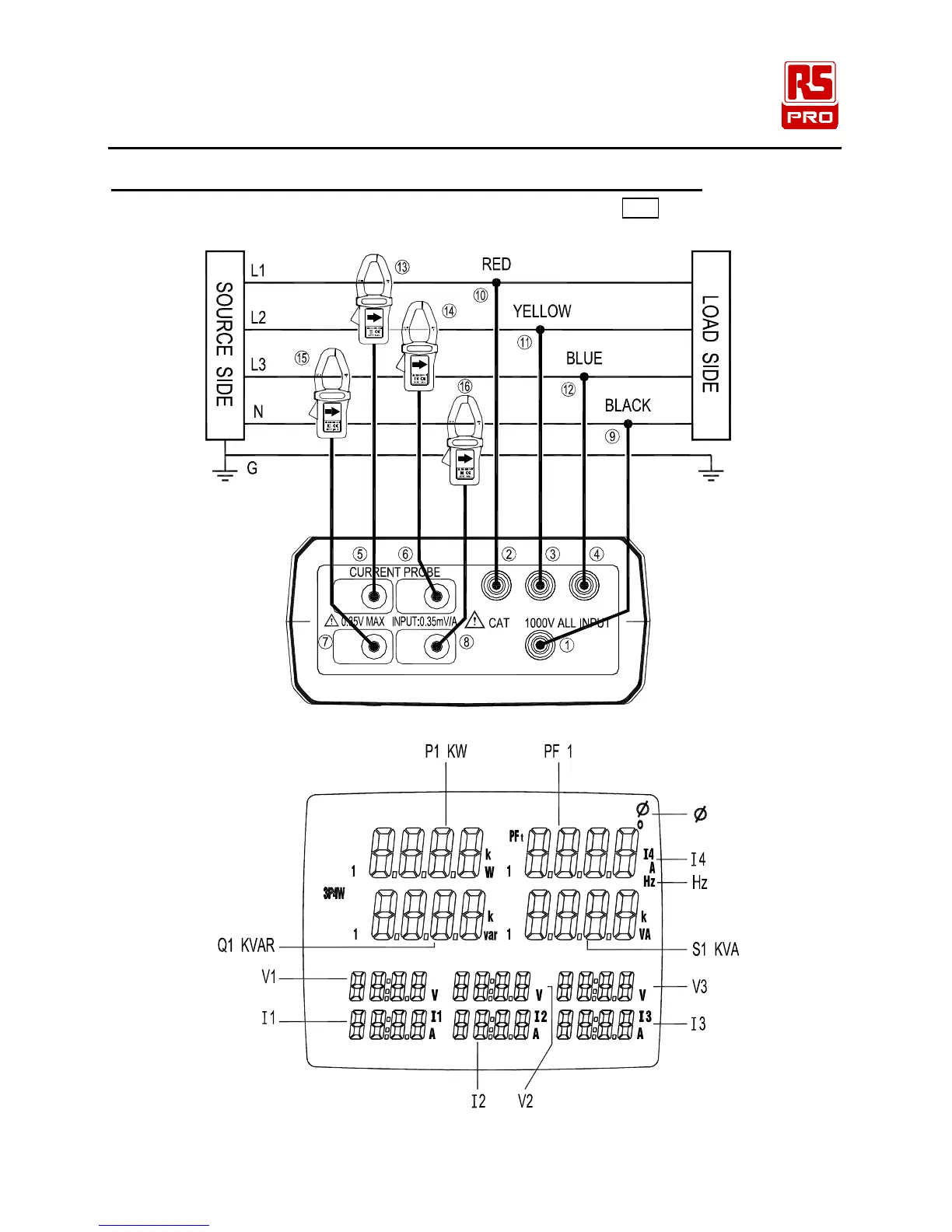 L1, L2, L3 : Phase 1, Phase 2, Phase 3, N: Neutral, G : Ground, Face the current probe