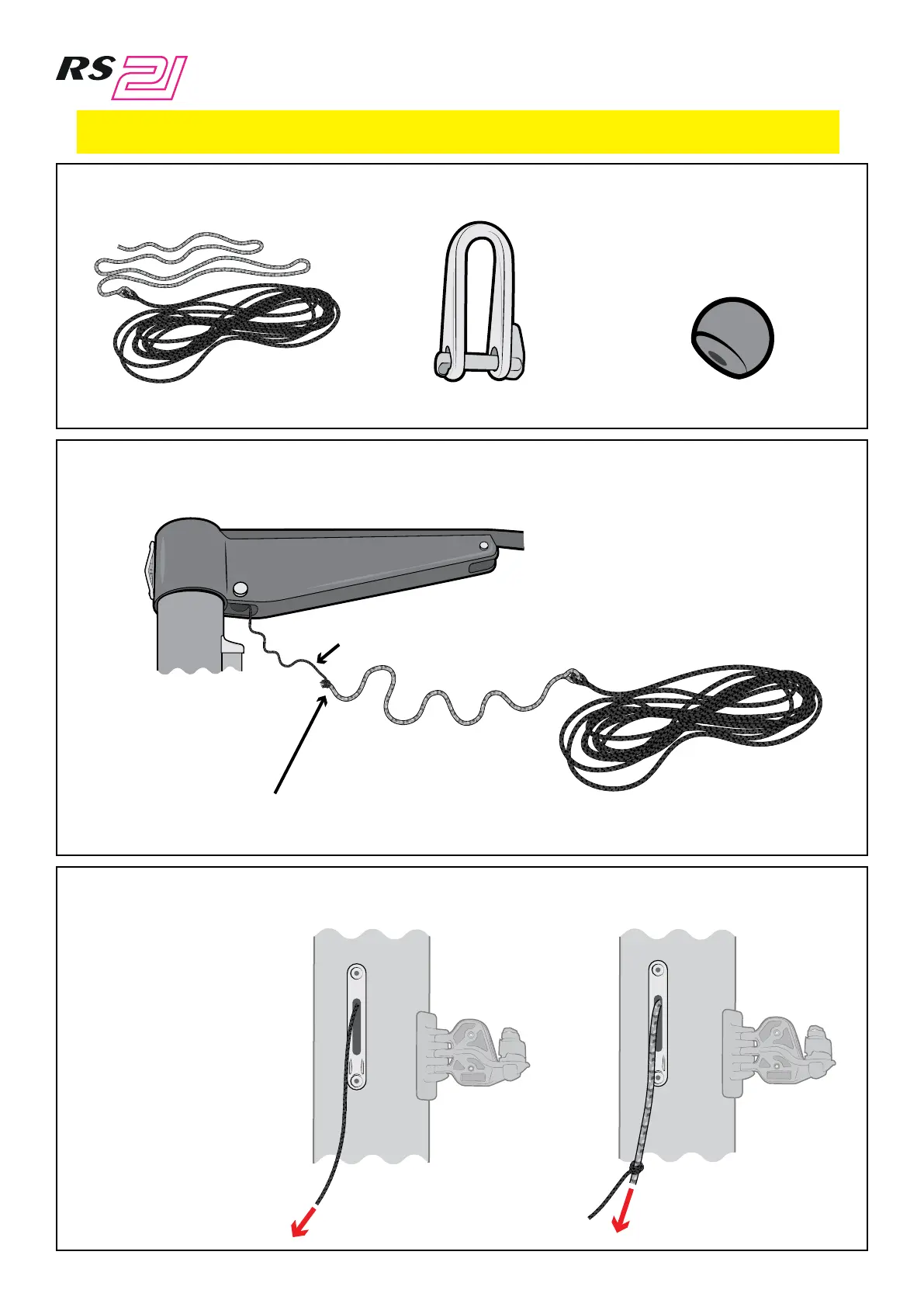 Main halyard Main halyard shackle Plastic bobble x 2