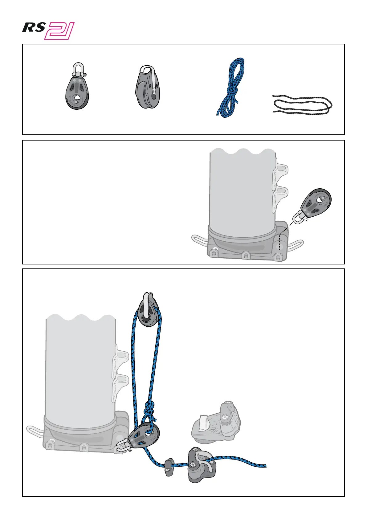 the blocks, fairlead and cleat as shown.