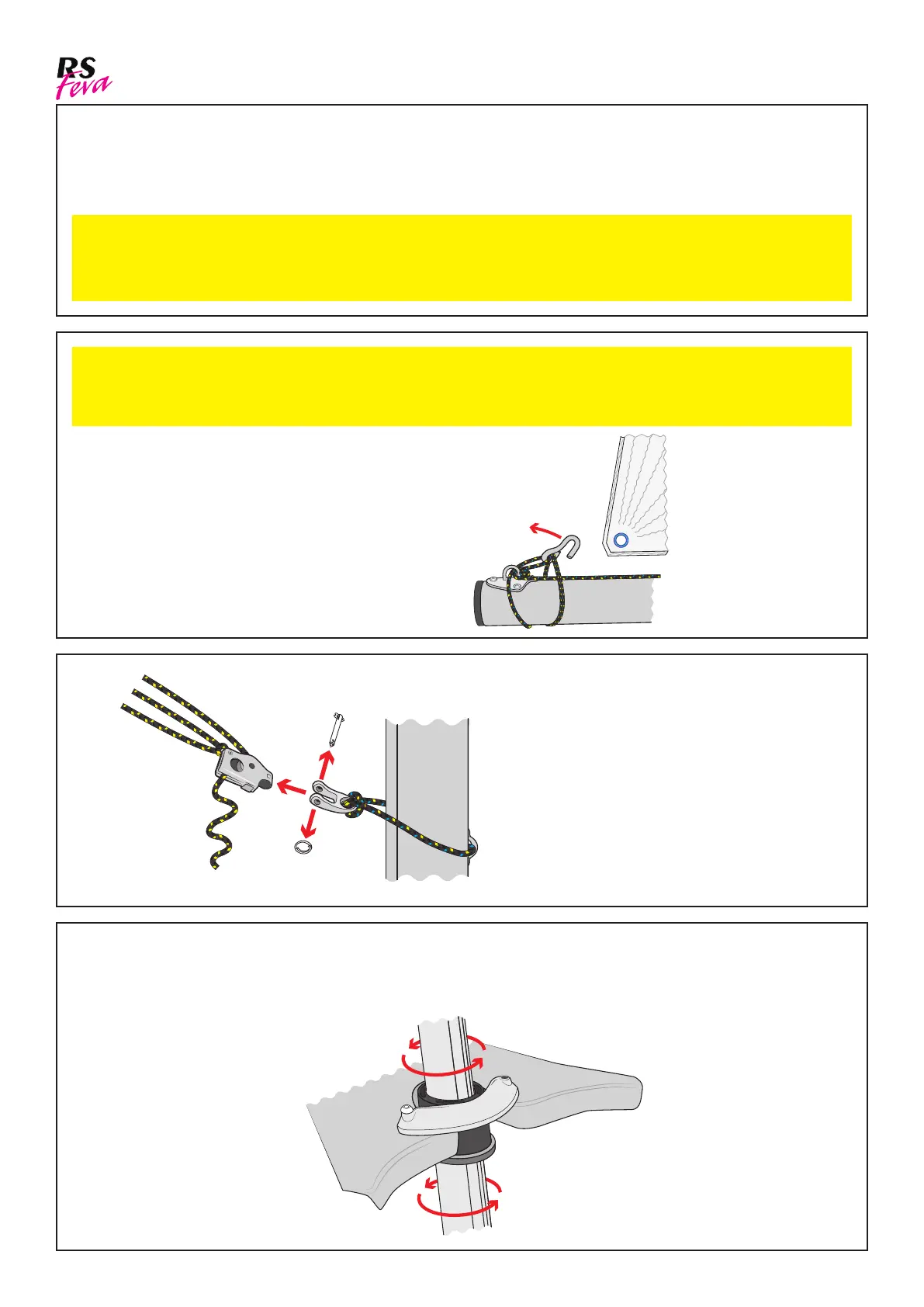 This method of reeng is applicable to the RS Feva S mainsail, when sailed without a jib.