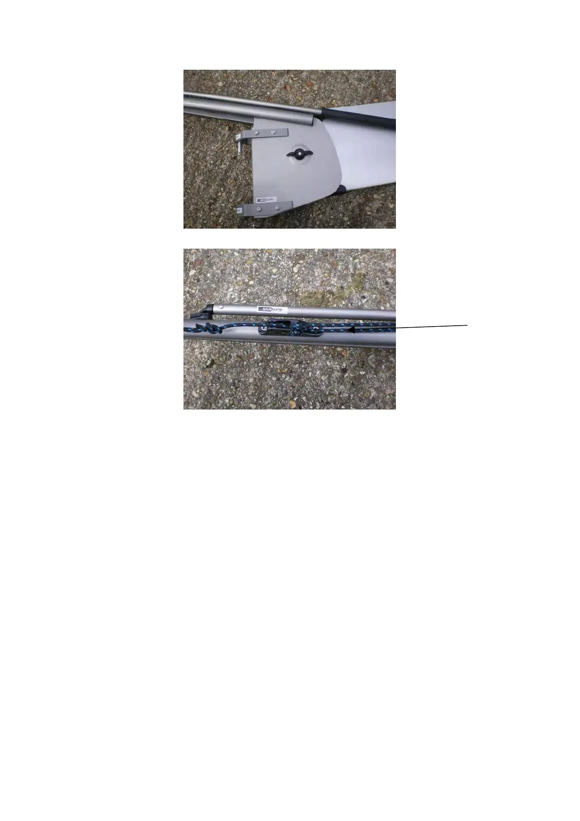 1. Tie one end of the mainsheet through the middle of the forward block in
