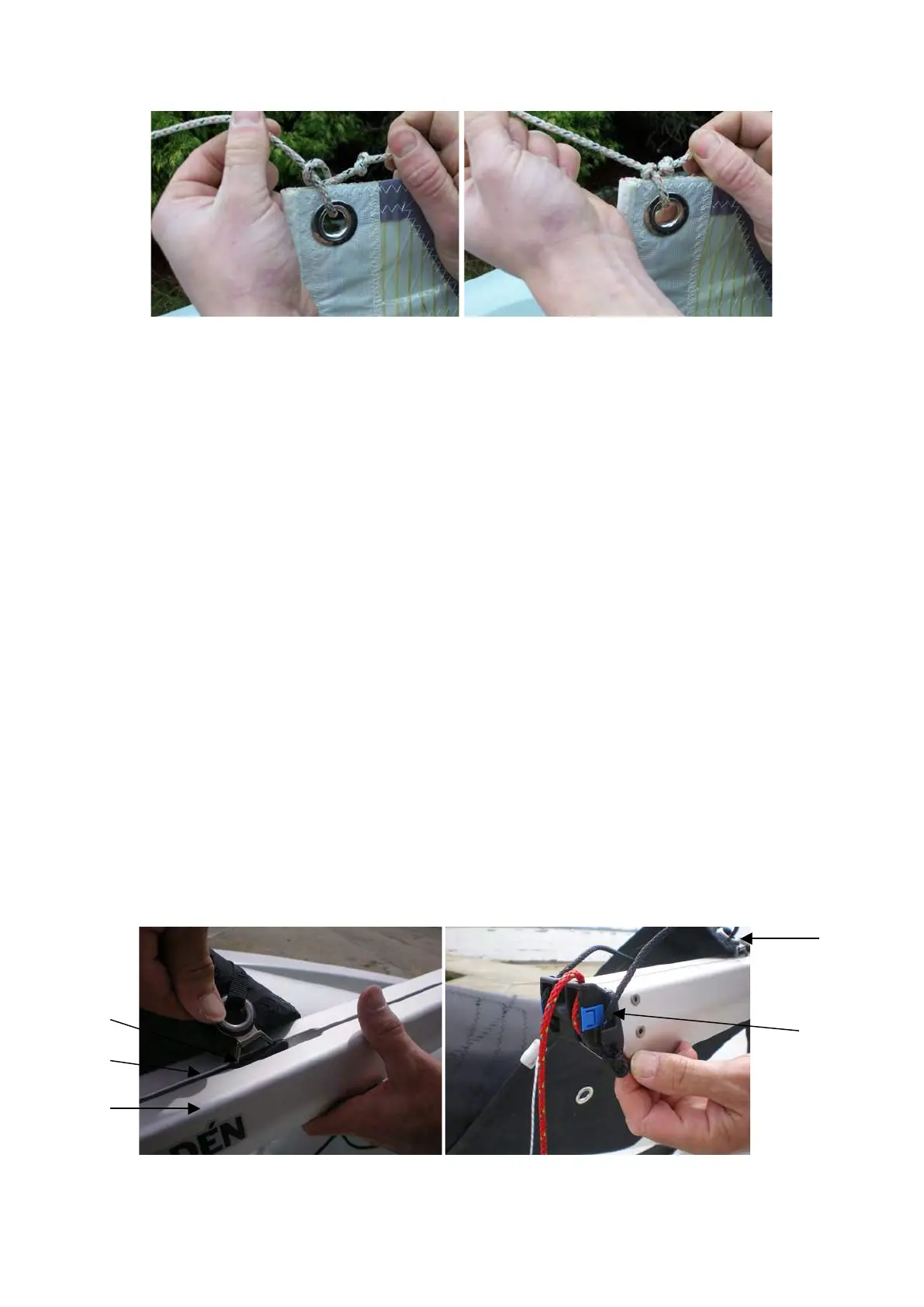 7. Pass the end of the outhaul rope through the clew of the main sail and