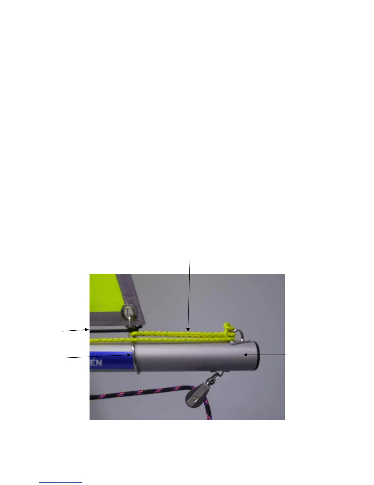 webbing strap, and through the cleat mounted on the top of the boom.