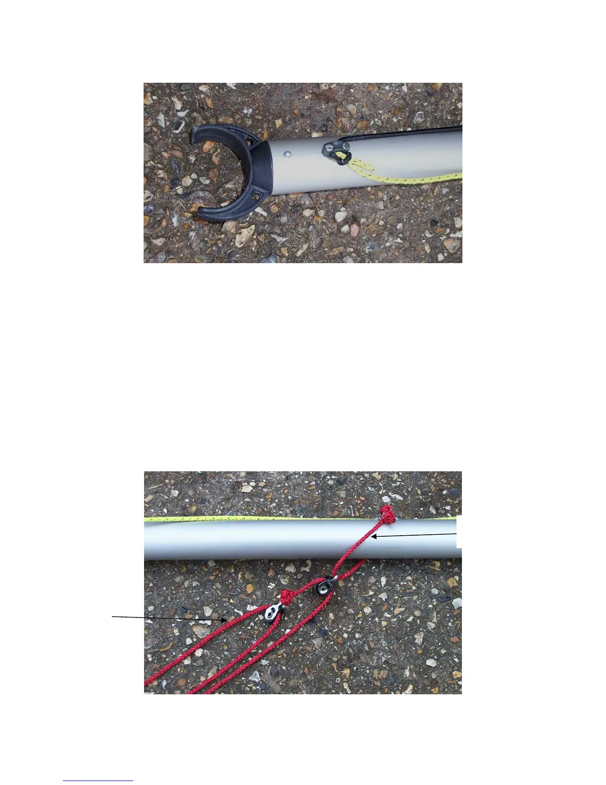 10) Finally, thread the end back through the eyelet on the boom, in the opposite