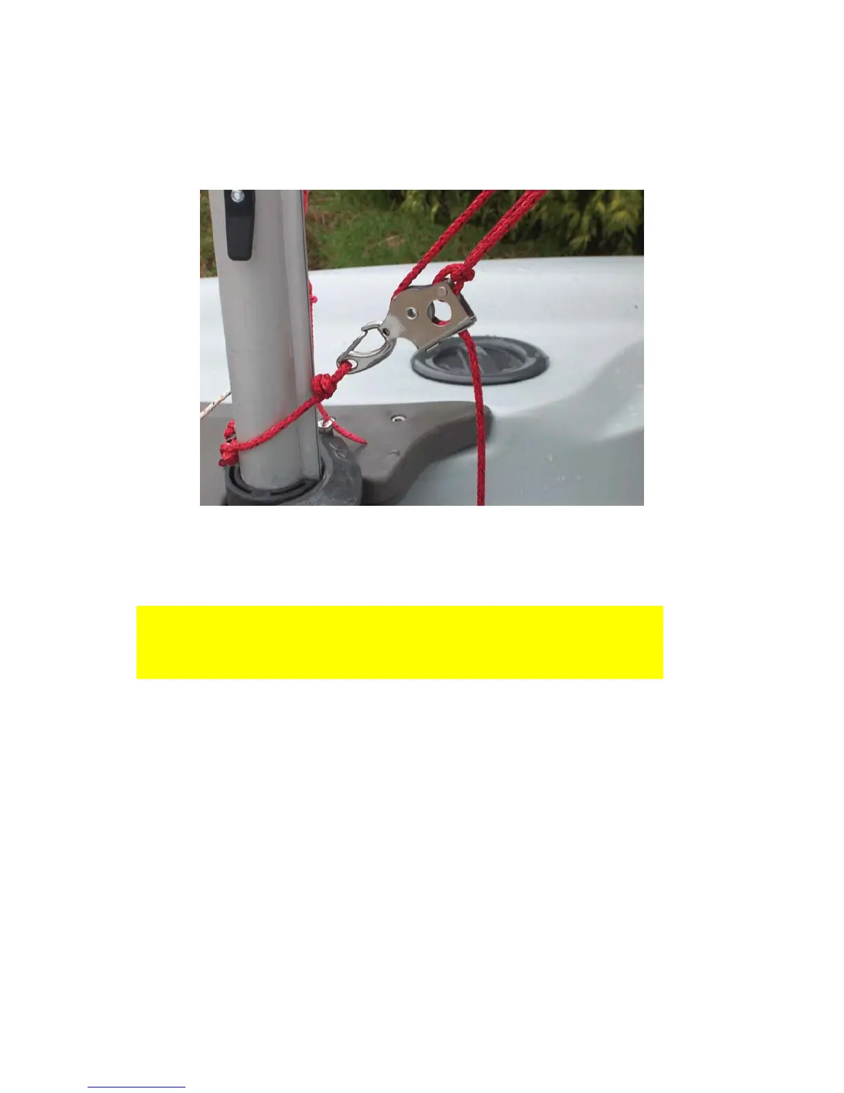 22) Now connect the cleat on the kicking cascade to the hook on the mast (see