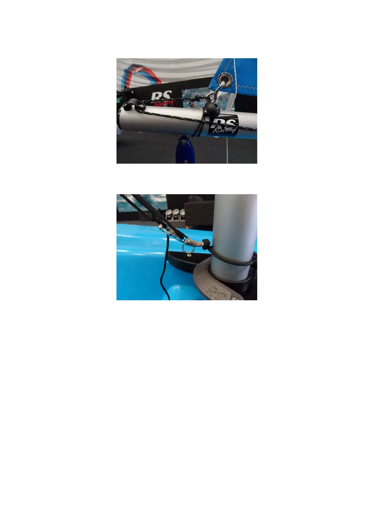 And the lower block of the kicker to the shackle on the mast- this has a quick release