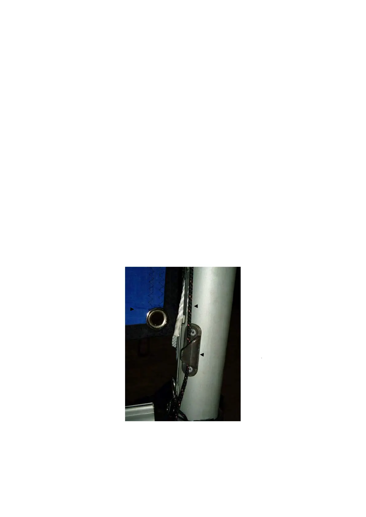 webbing strap in the clew of the mainsail to pull the sail into position, attach