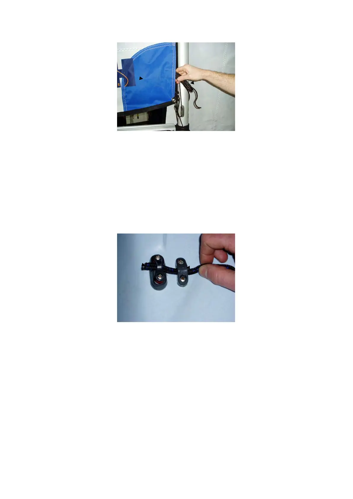 8. Thread one end of the jib sheet through the metal eyelet in the clew of the jib,