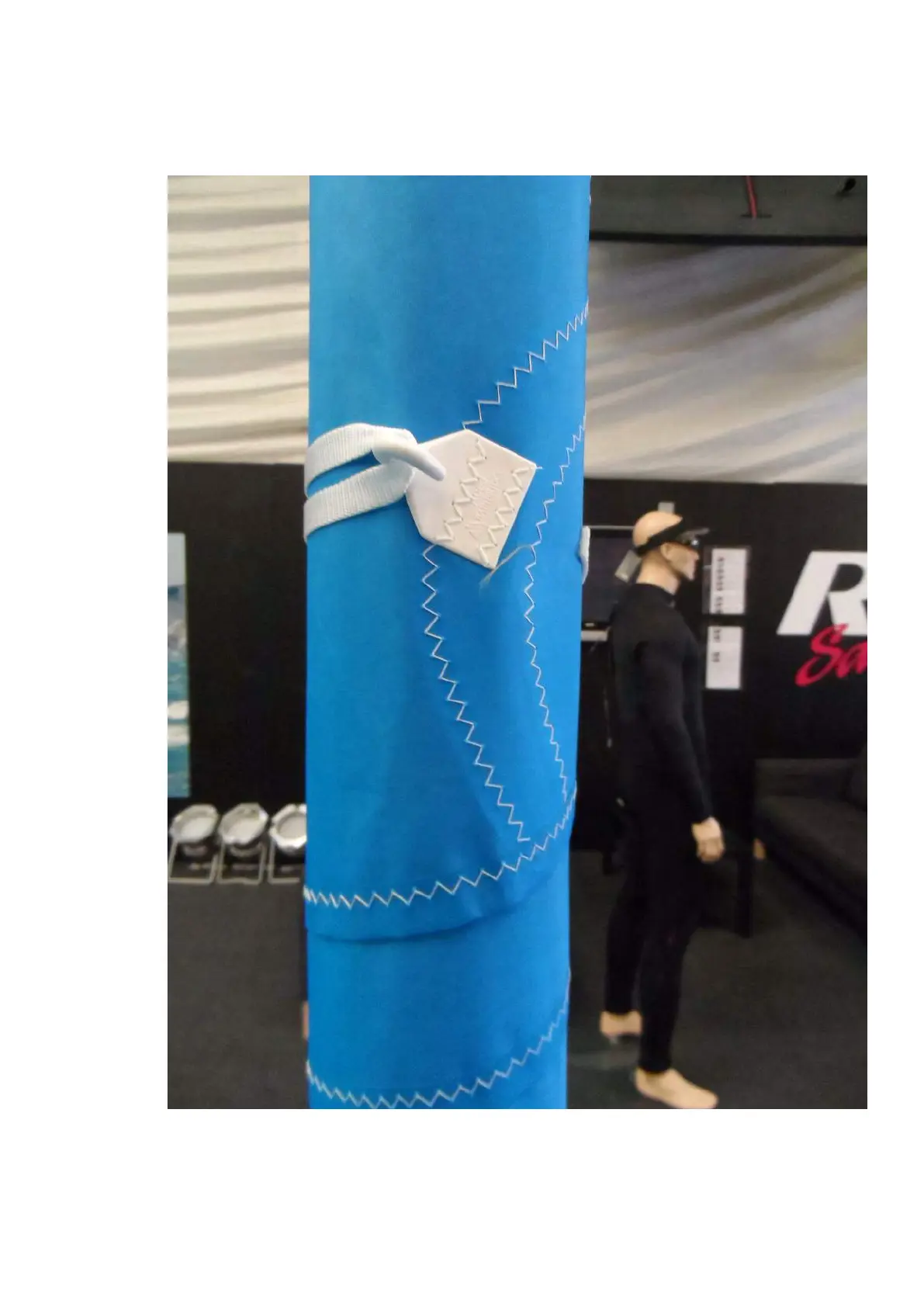 The sleeved sail has a strap and hook at the clew so the sail can be furled