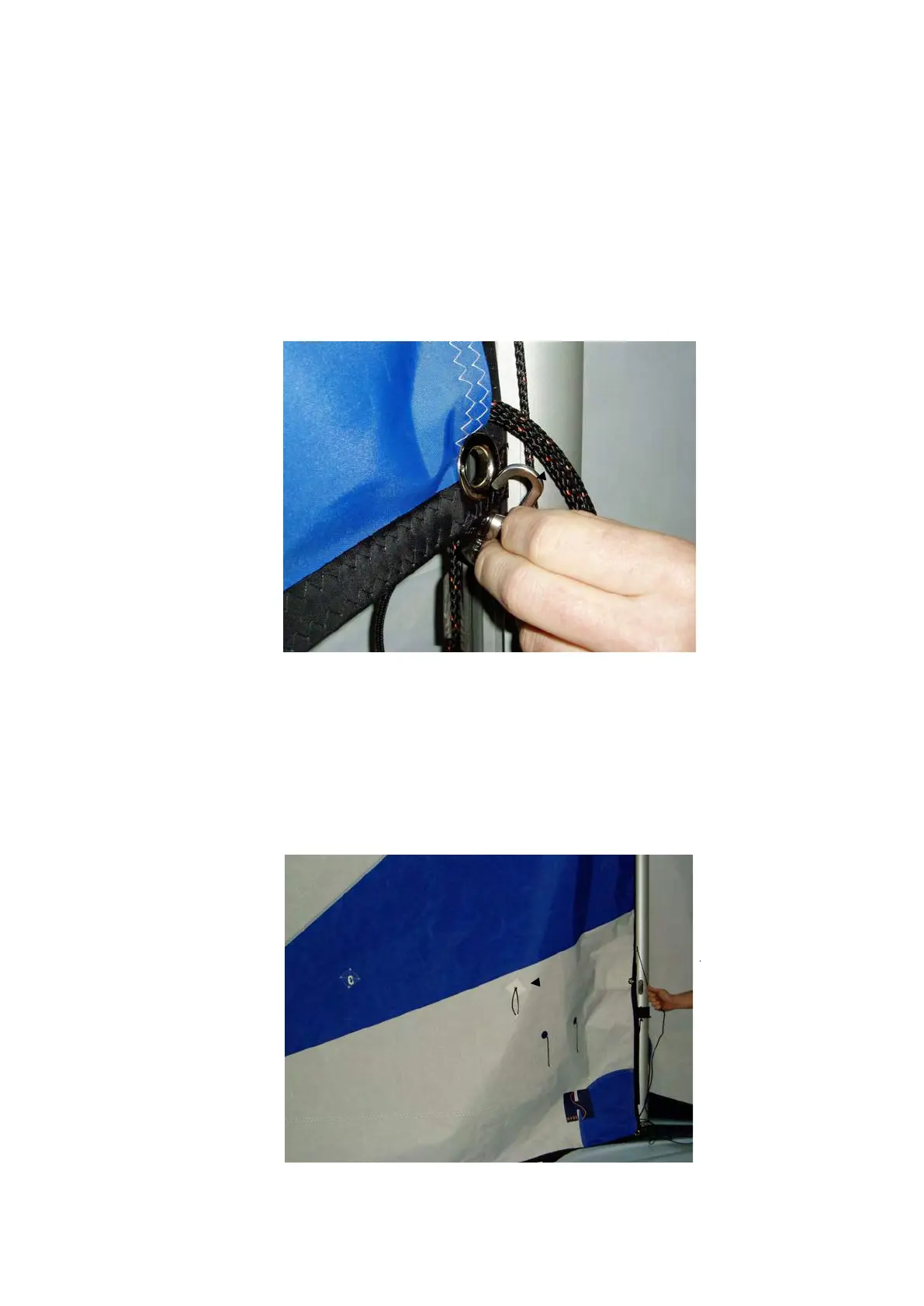 5. Pull the mainsail down until the line of reefing eyes in the mainsail is level with