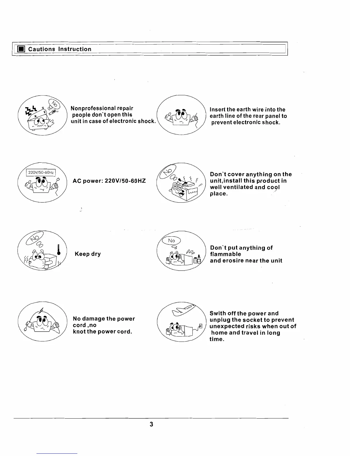 RSQ KA-2000 - Cautions and Safety Instructions; Electrical Safety Precautions; Operating Environment