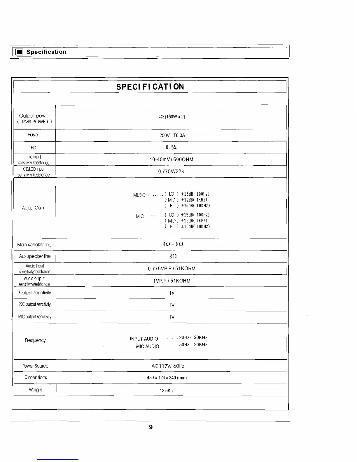 RSQ KA-2000 - Technical Specifications; Power and Performance; Input;Output Characteristics
