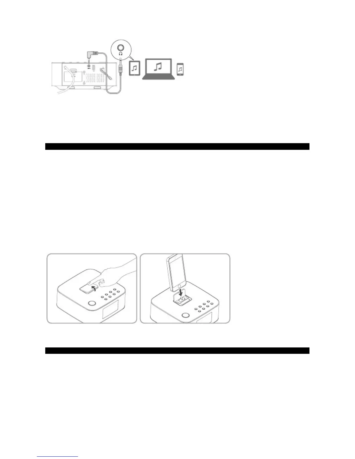 - Connect the 3.5mm audio cable to the LINE IN socket on the rear of unit and to the headphone socket on the audio player.