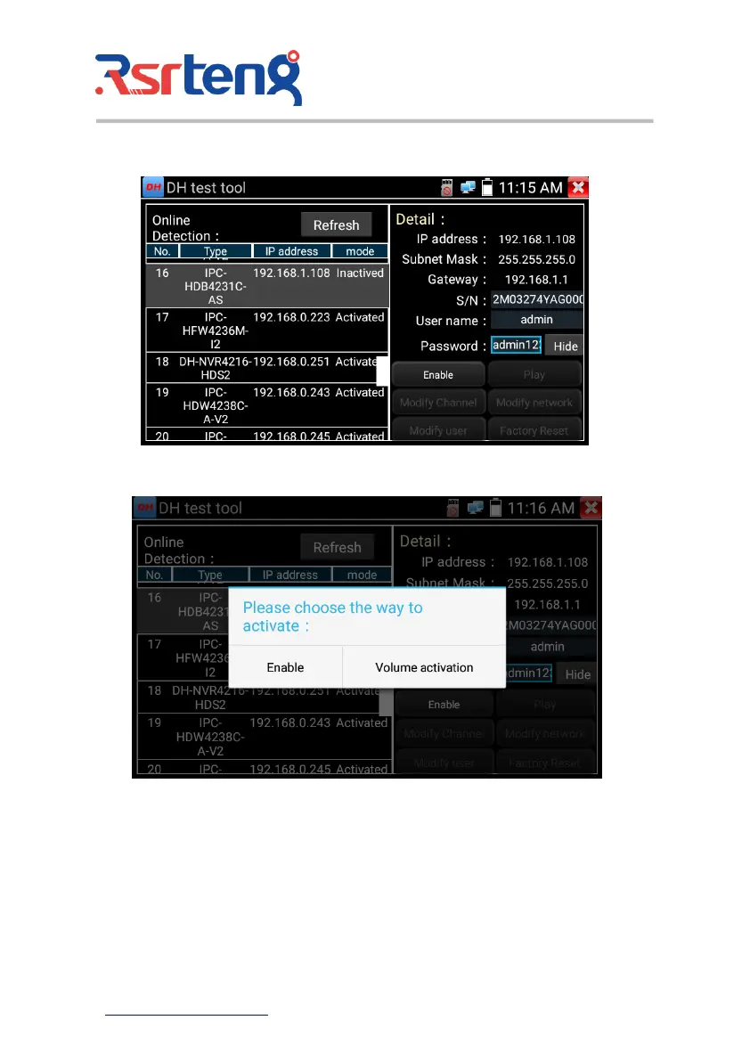 Activation: select left [online detection] to display the "inactivated" camera and click activate.