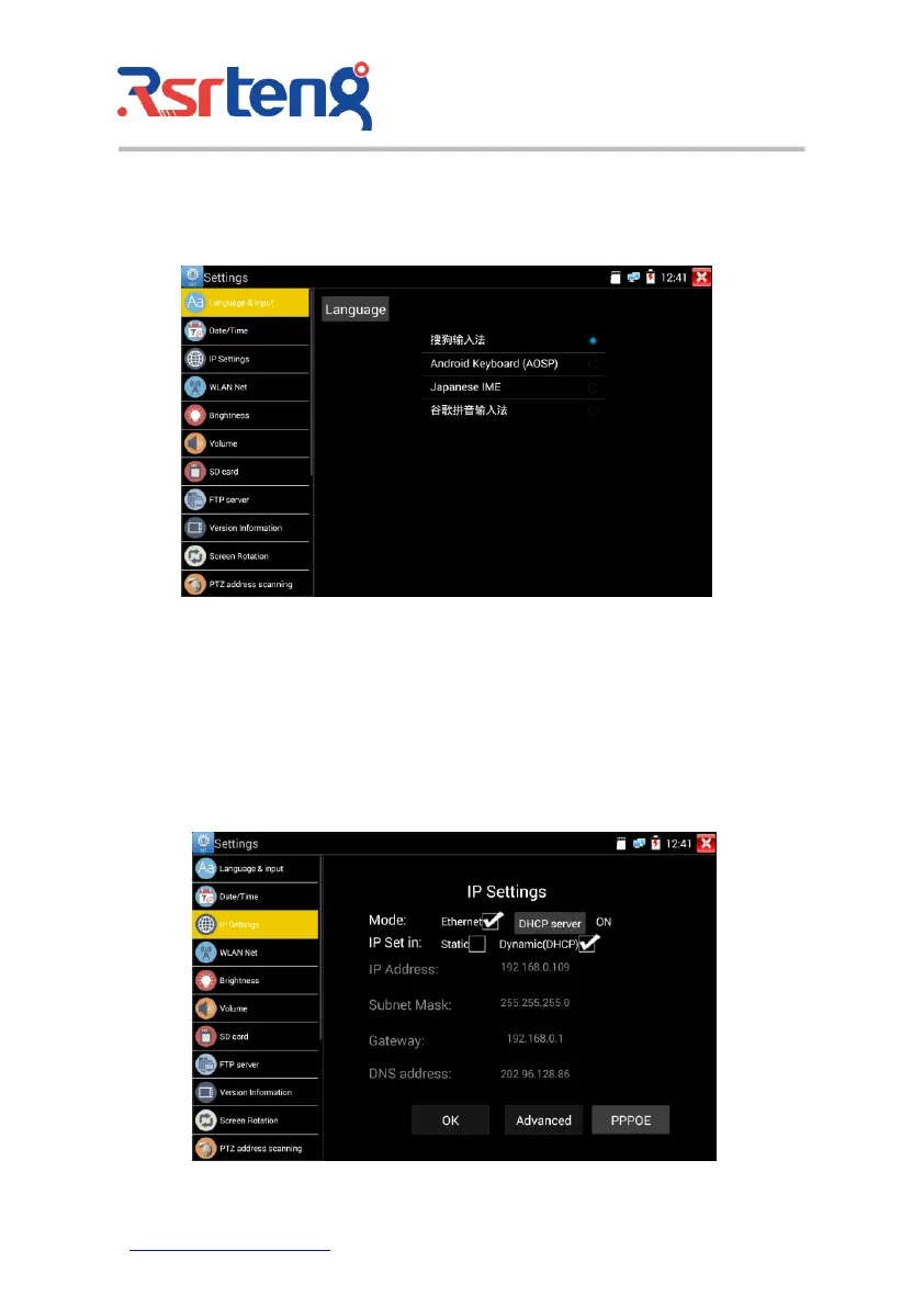 IP setting: Manually set the IP address, Subnet Mask, Default Gateway and DNS address or select