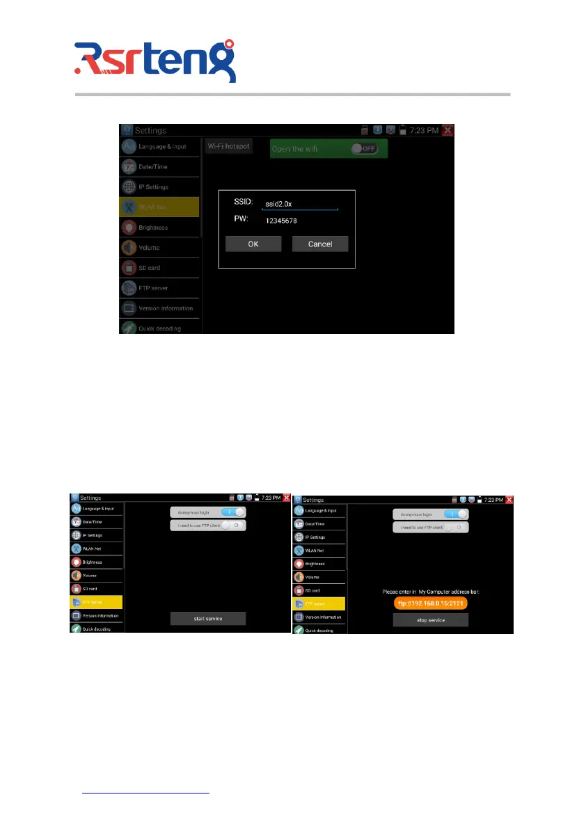 Wi-Fi hotspot: Input "SSID" name and "password", and then click "ok" to create Wi-Fi hotspot.