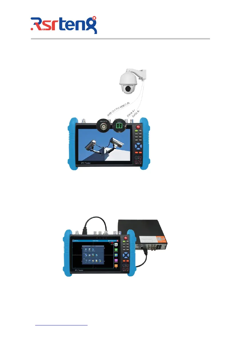 2) Connect the SDI camera or the speed dome RS485 controller cable to the tester RS485 interface.