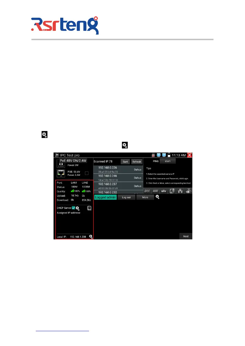DHCP server: after entering “IPC test pro” app, the DHCP Auto-turn on. Go “Assigned IP “-IP Info., click