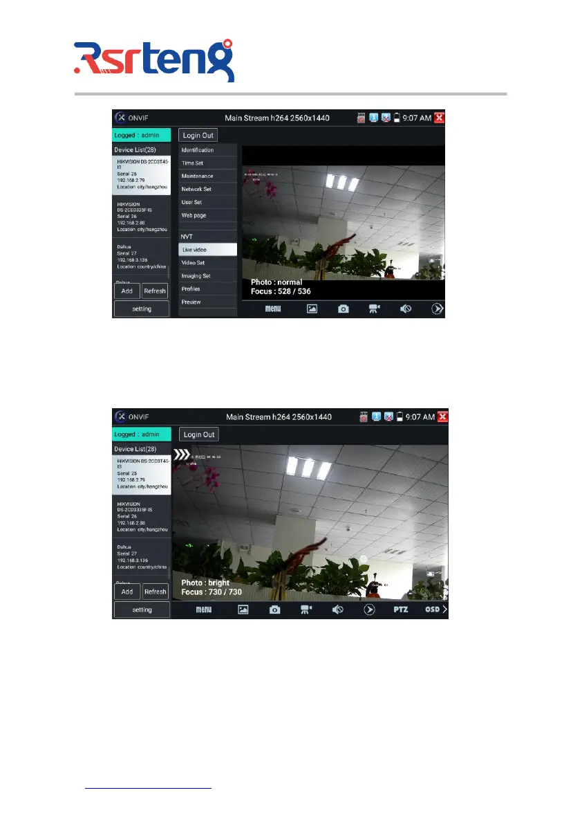 cameras will rotate accordingly. PTZ rotation direction is displayed on top left corner of the image.