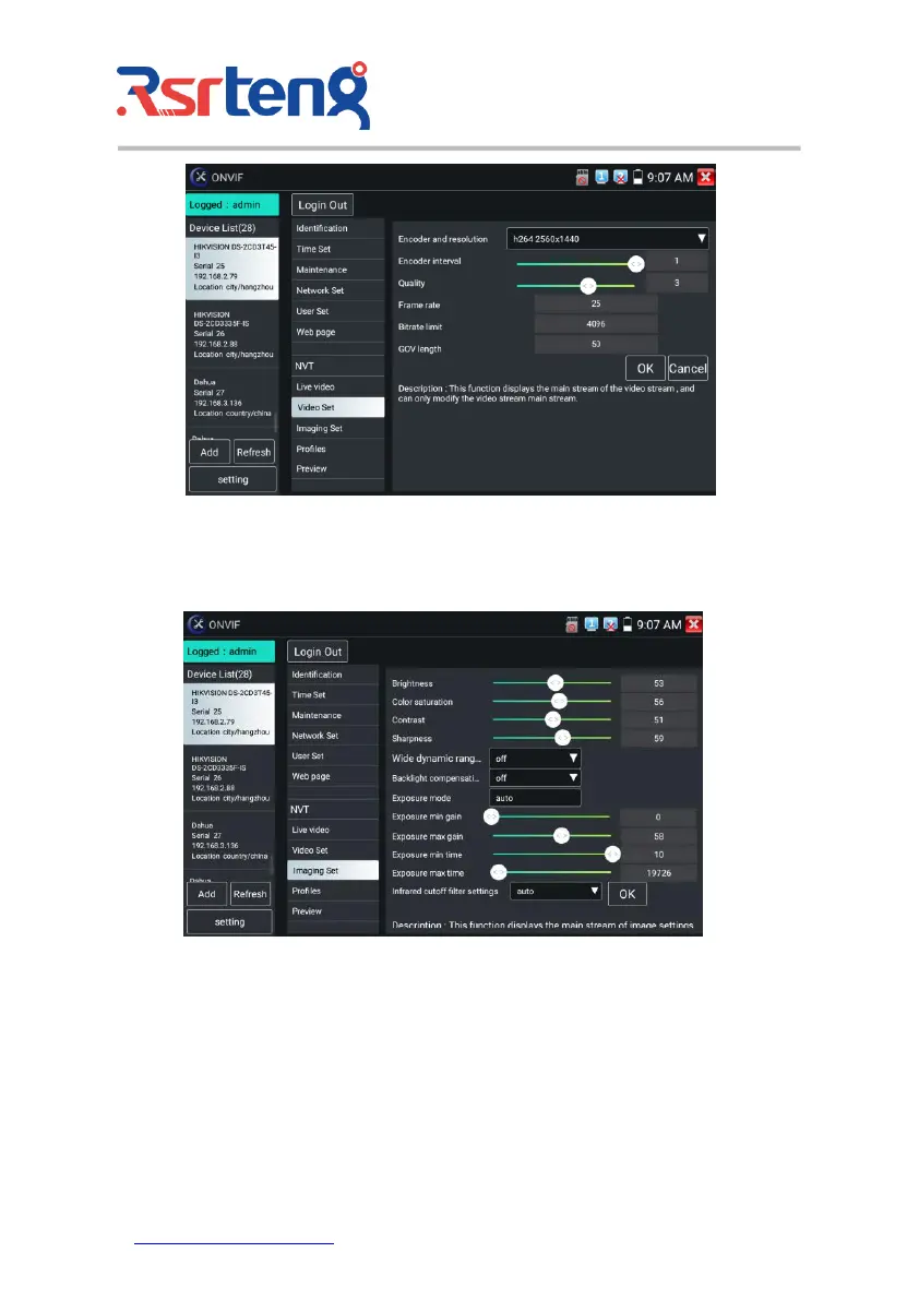 Image setting: Click "Imaging Set" to adjust image brightness, saturation, contrast, sharpness and