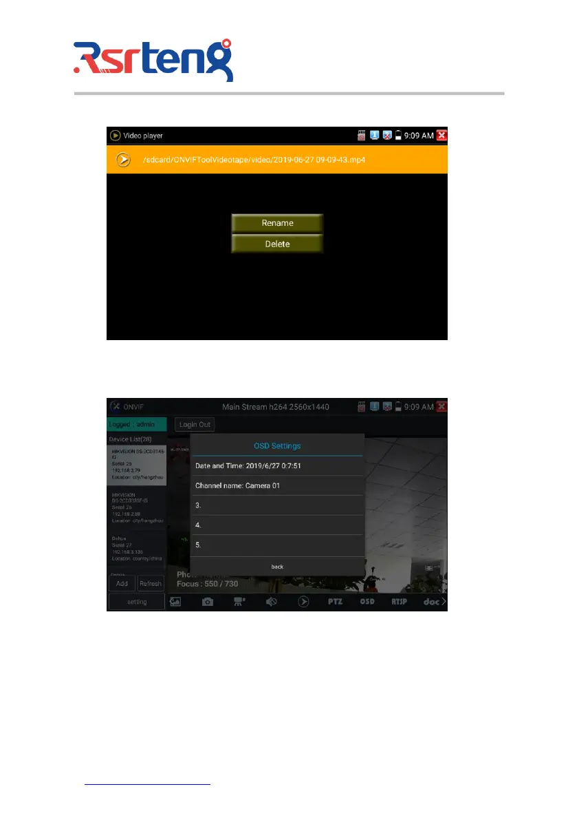 OSD Menu: Select OSD and popup the OSD menu. include time, channel name and other optional