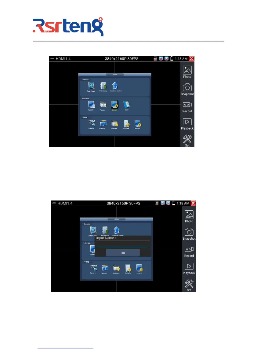for the snapshot. If the unit is set up to automatically set file names, this box will not pop up.