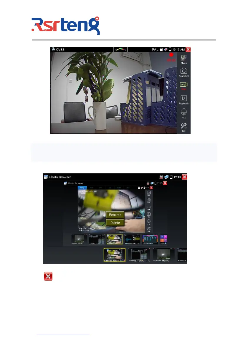 To rename or delete an image, click and hold on the file until this screen below appears.