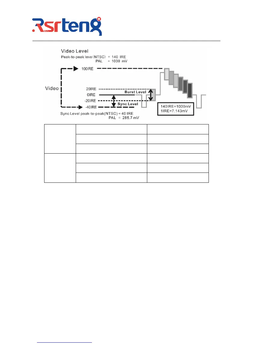For NTSC format, the video signal level is 140±15IRE
