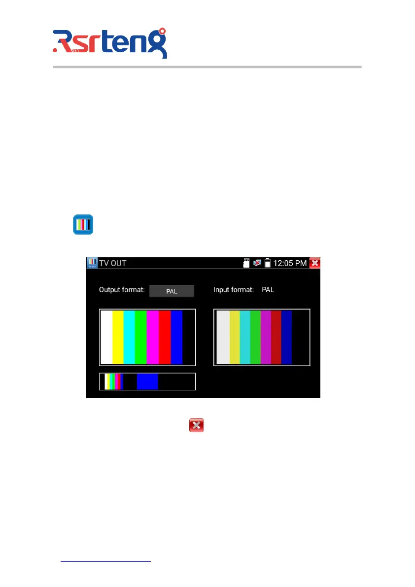 Click to enter, the tester sends the color bars from the "Video out" port, Click the icon "PAL",