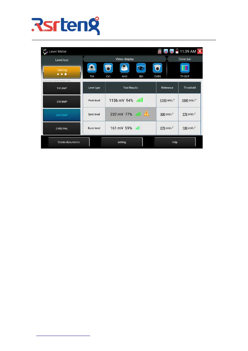 Level Meter Test: Need to select the camera type and resolution, click "test" to test the level