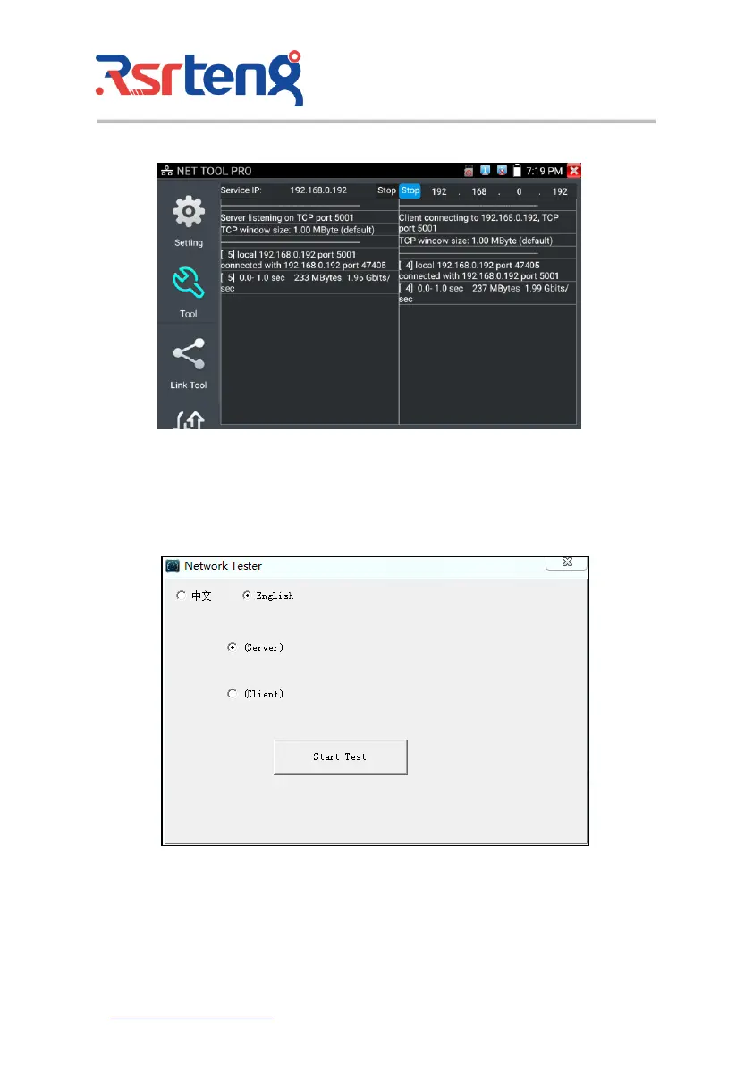 segment, but with different IP address. Input Server's IP address 192.168.0.39 in the tester and click