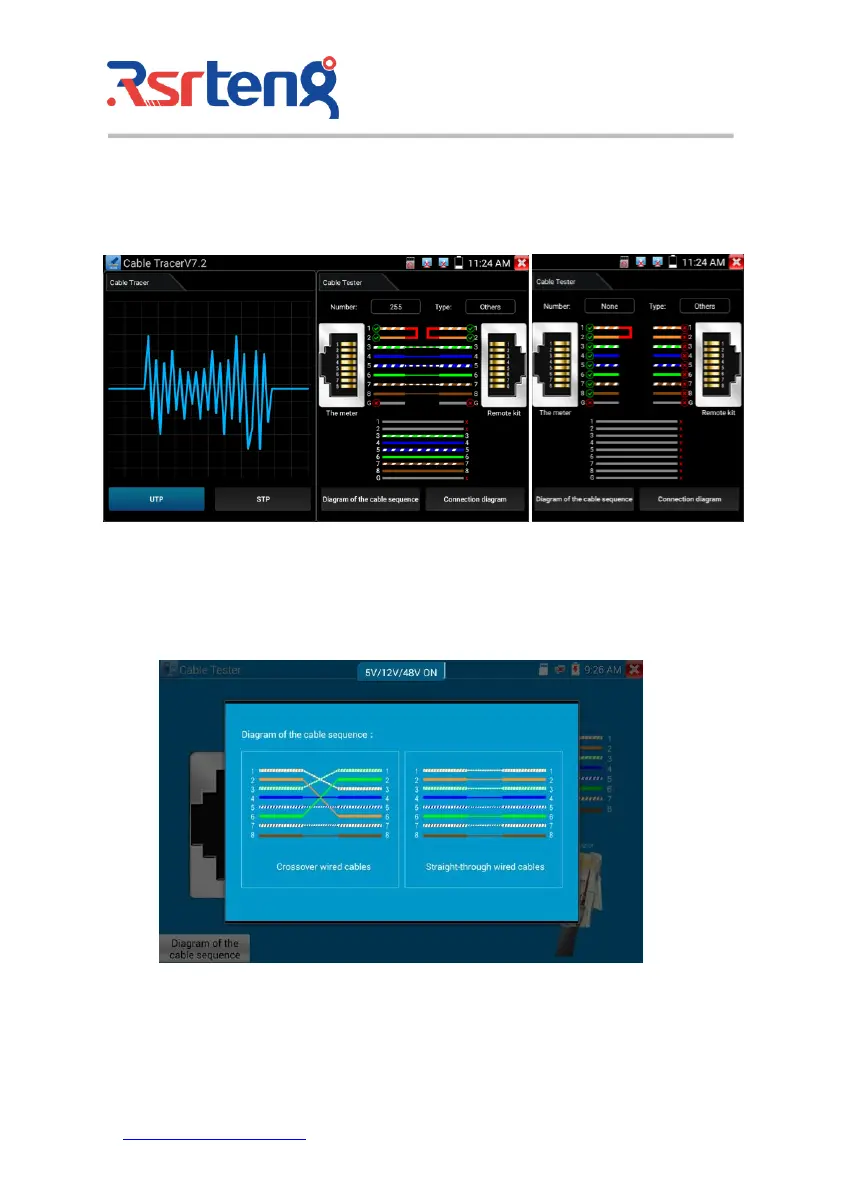 Tap "cable test sketch map", pop up Straight-through cable and crossover cable sketch, It is for line