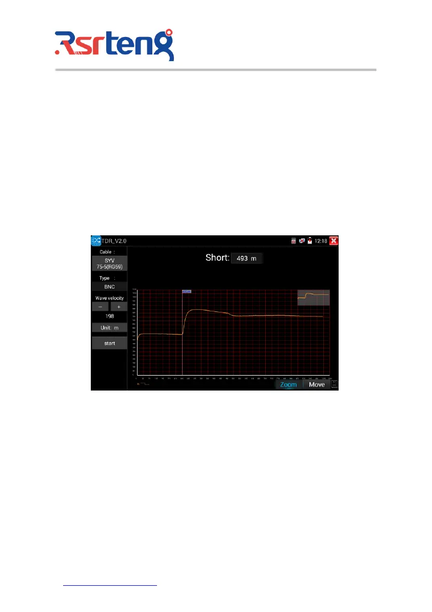 in cable type for testing, click "+" and "-" to adjust cable's wave speed.
