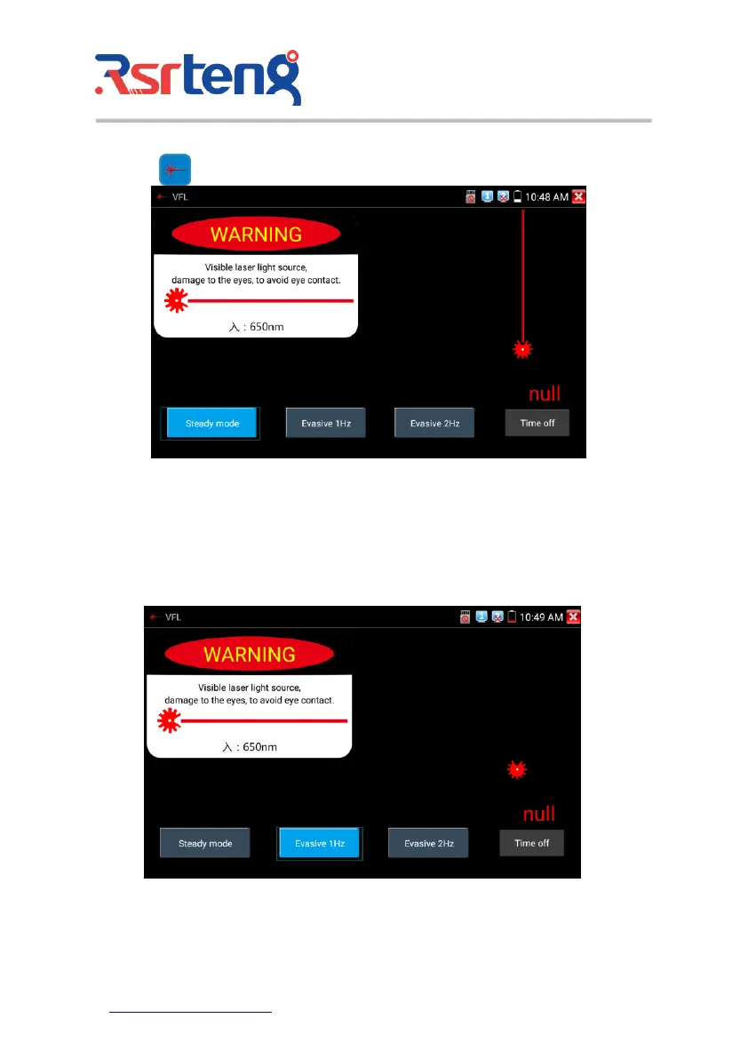 Click icons "Evasive 1Hz"or "Evasive 2Hz" to enter pulse mode, the red laser source is emitted by a