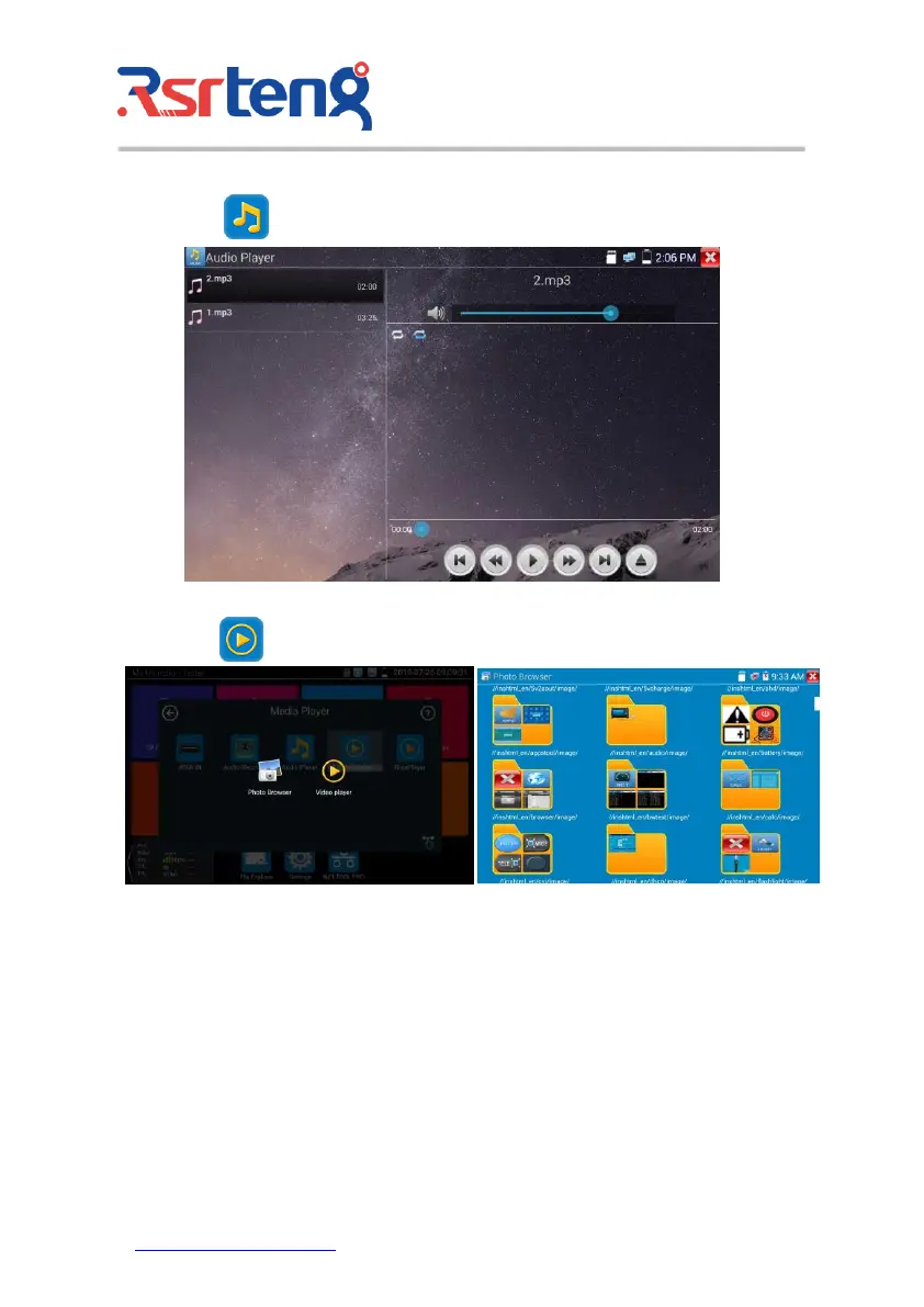 The Media player can browse video and image files. It supports the video formats of MP4, H.264,