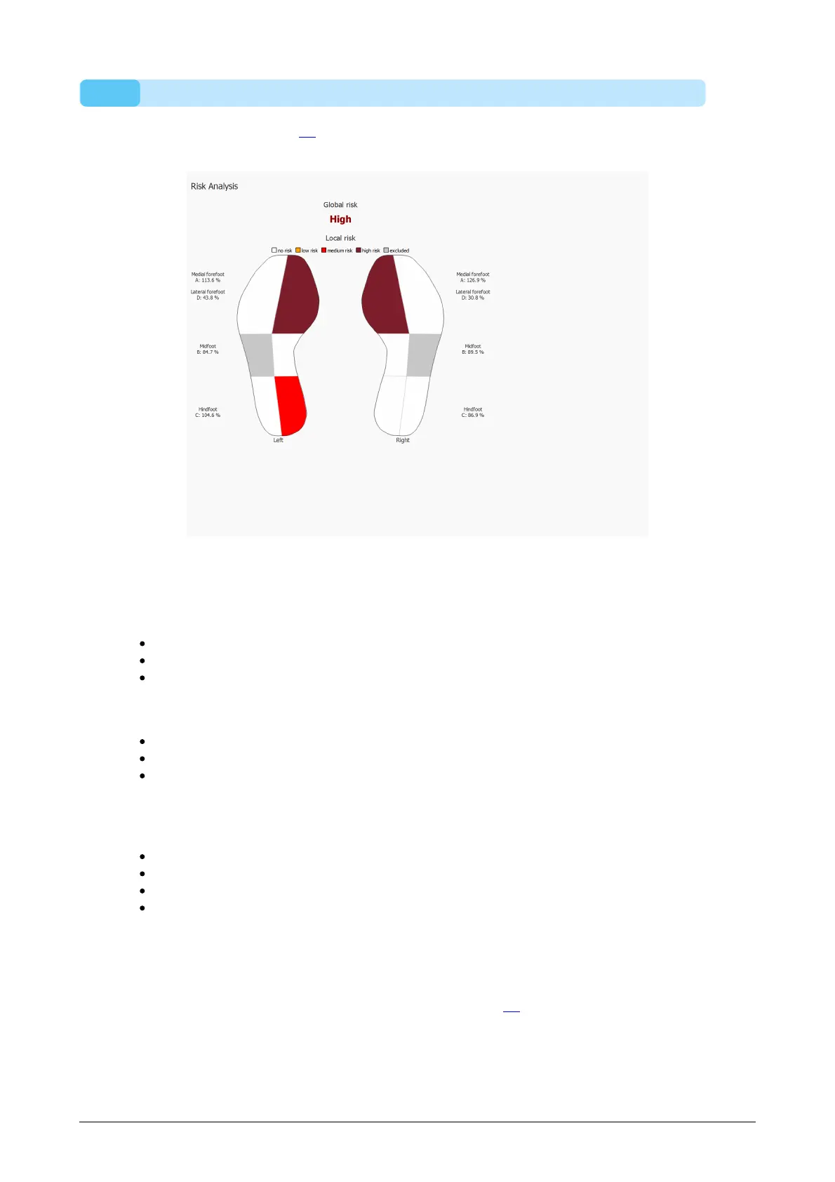 The Risk analysis screen gives a global and local risk of the feet in a dynamic