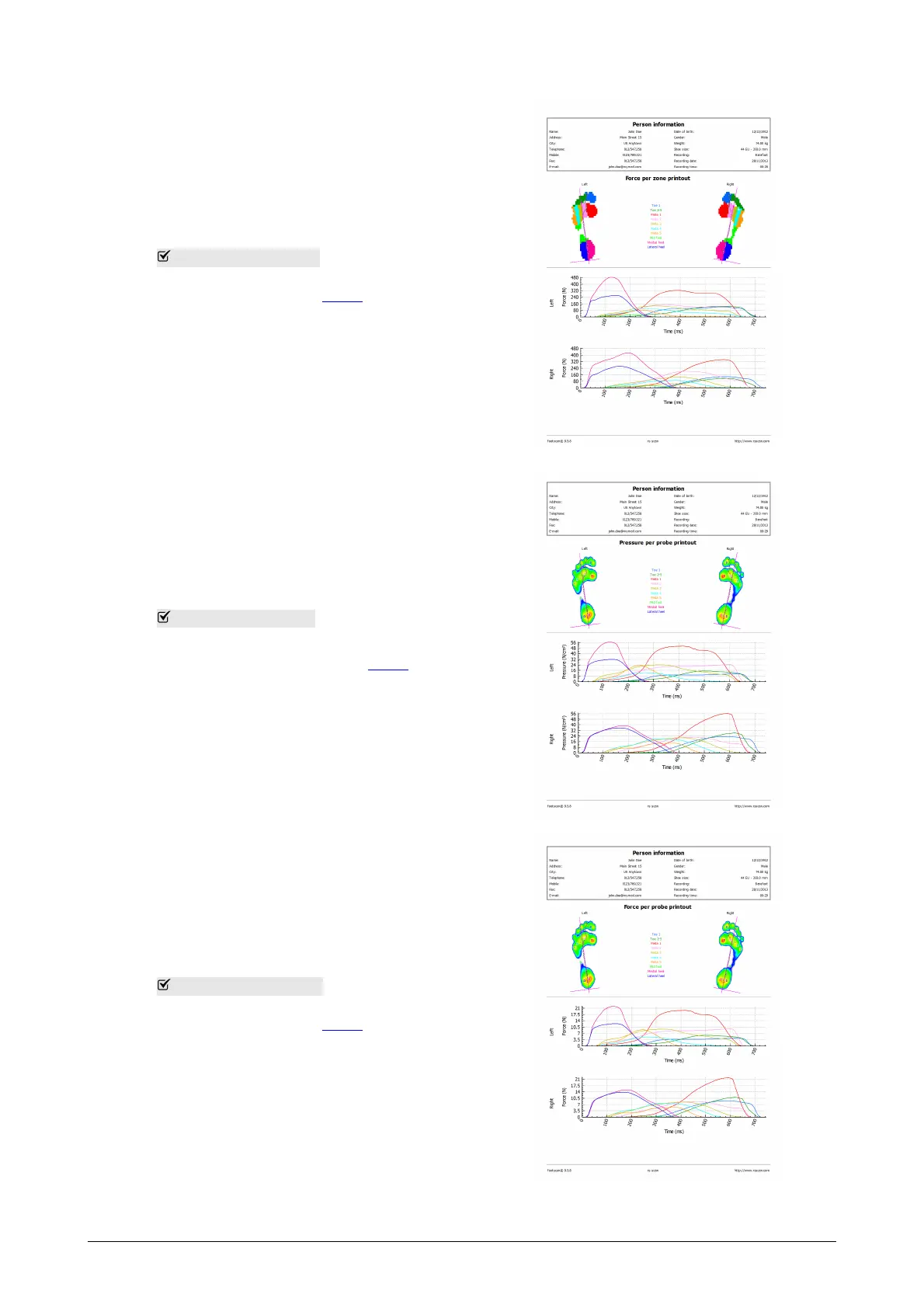 the force (N) applied on each zone of the