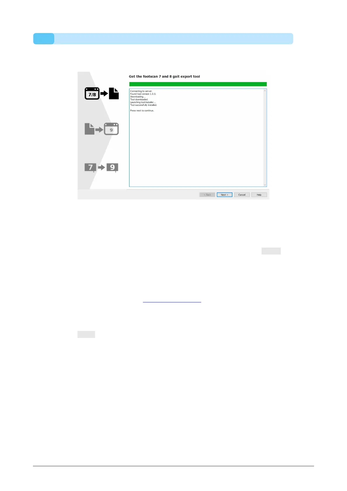If the download and installation of the footscan 7/8 gait export tool succeeded, you can