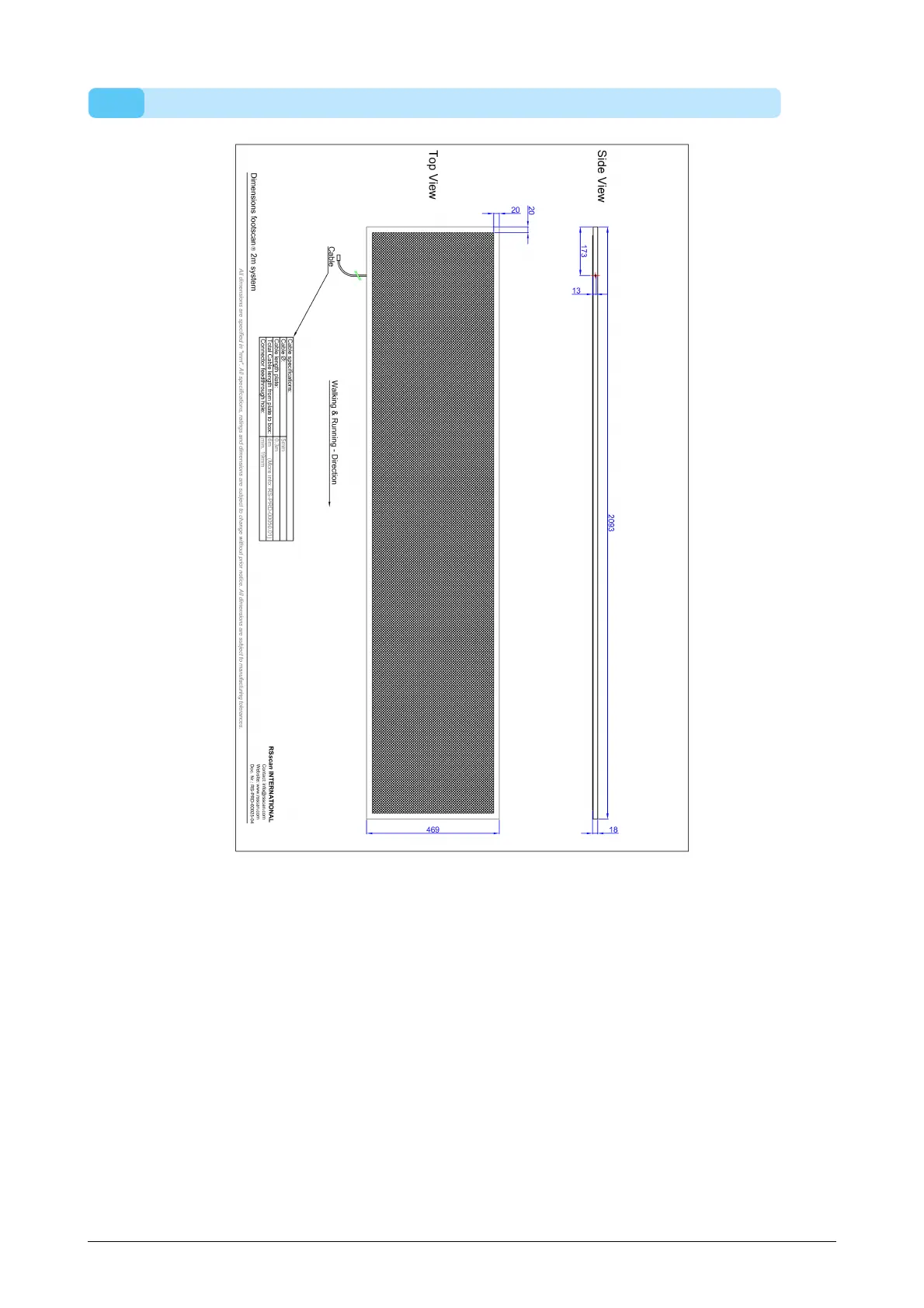 Figure 105: Dimensions 2m footscan plate for interface box