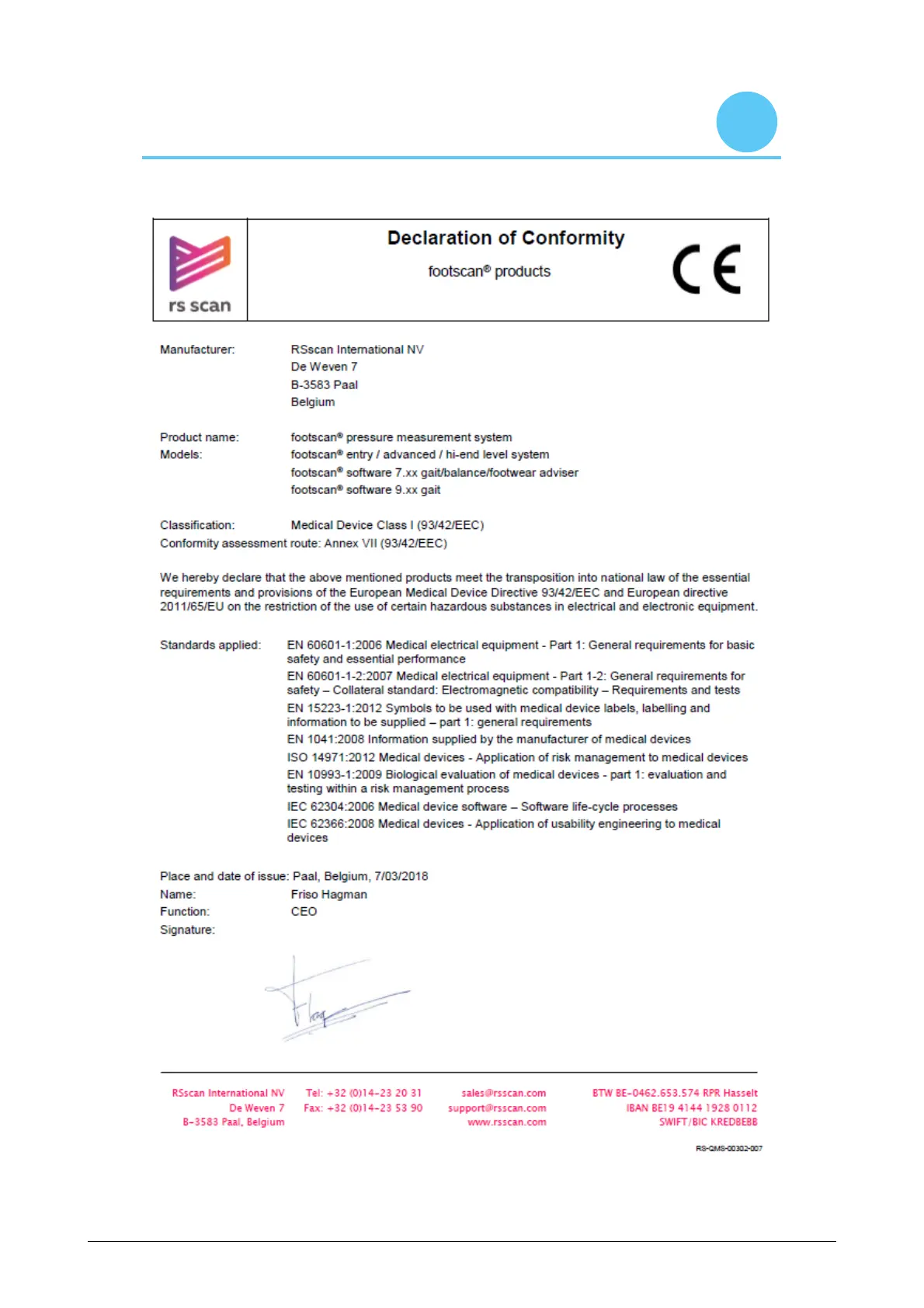 RSscan footscan - Chapter 20 Declaration of Conformity