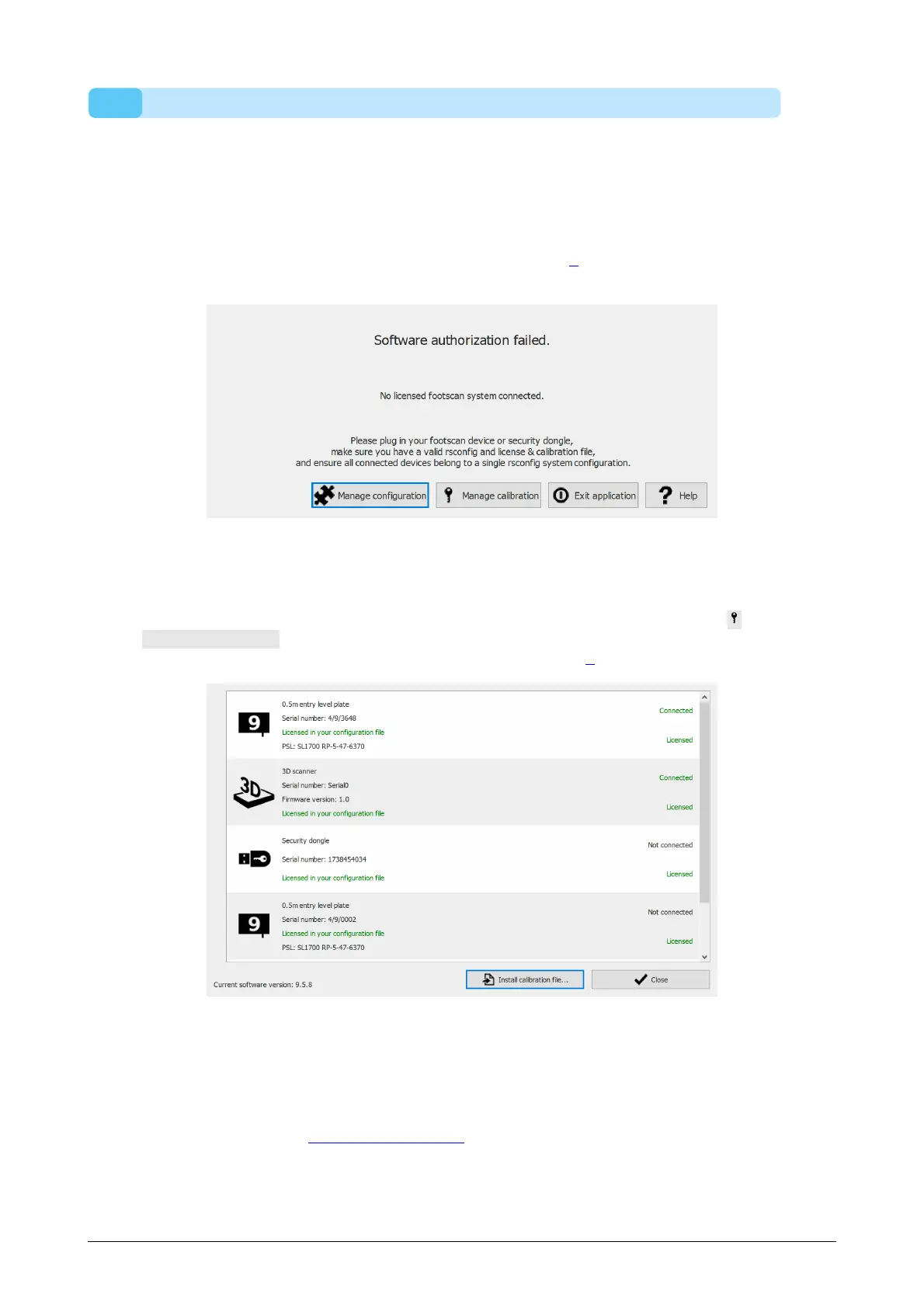 scanner or a USB2 hardware dongle. License information of the footscan device(s) is