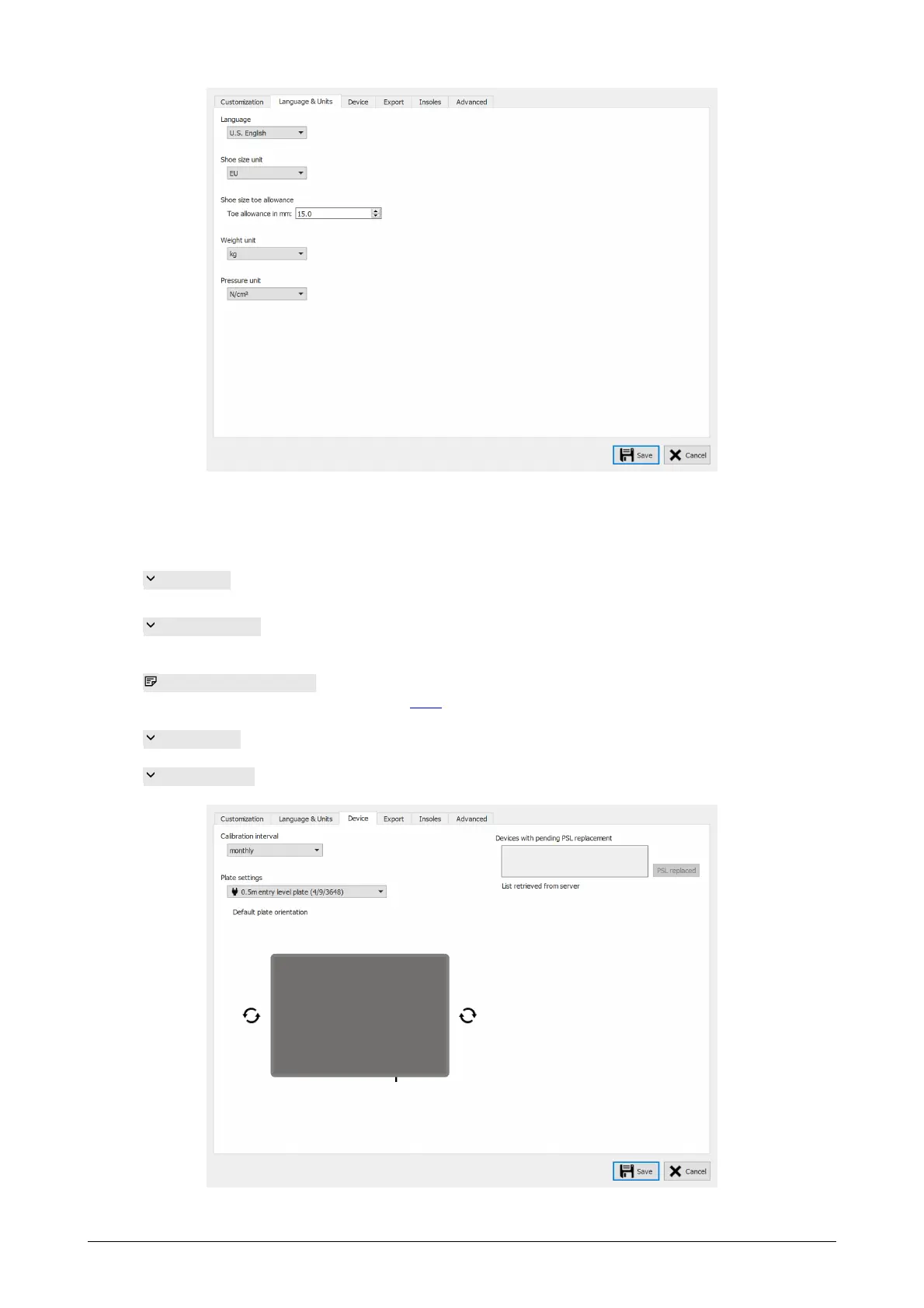 Shoe size unit Controls the unit of the shoe size used in footscan 9.