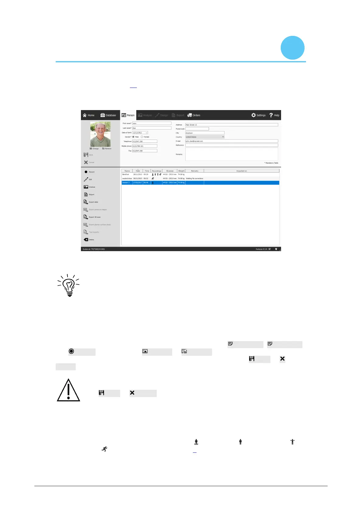 Personal Information For each client, footscan 9 stores name, address, birth date,