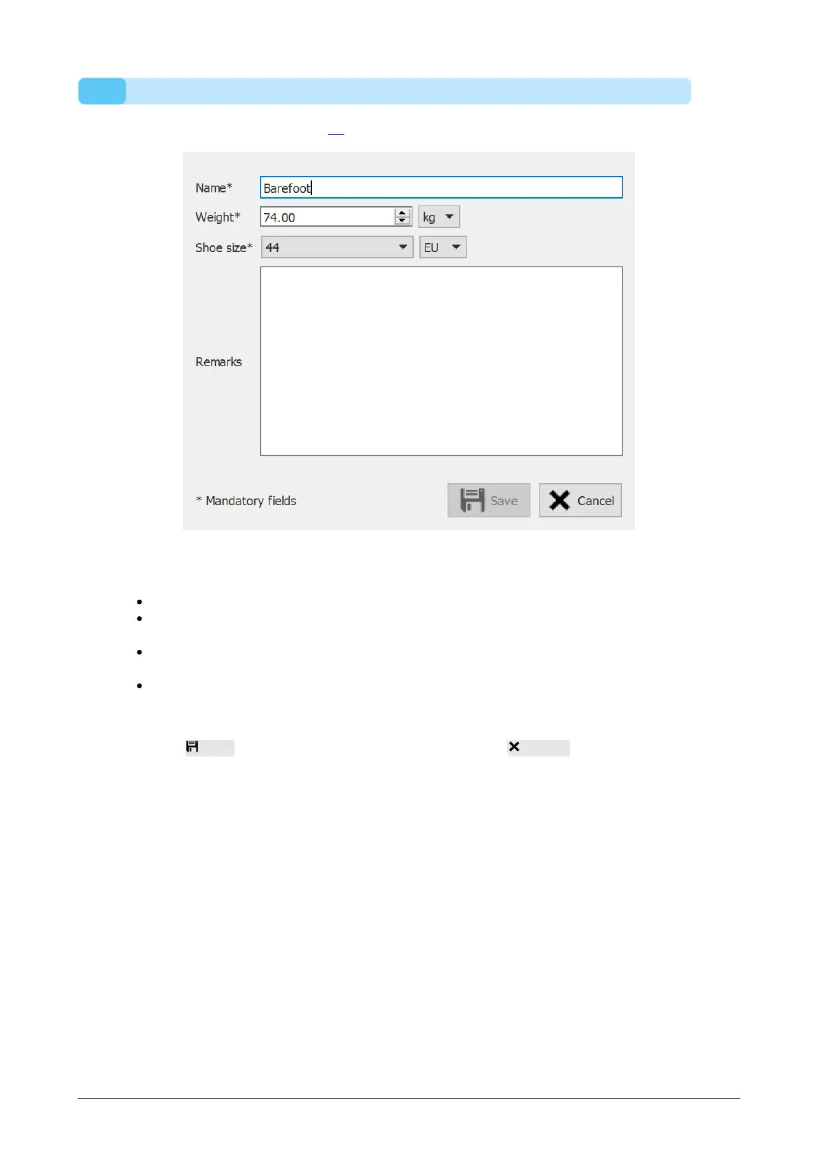 Weight and weight unit (the selected weight unit will be used in the entire footscan