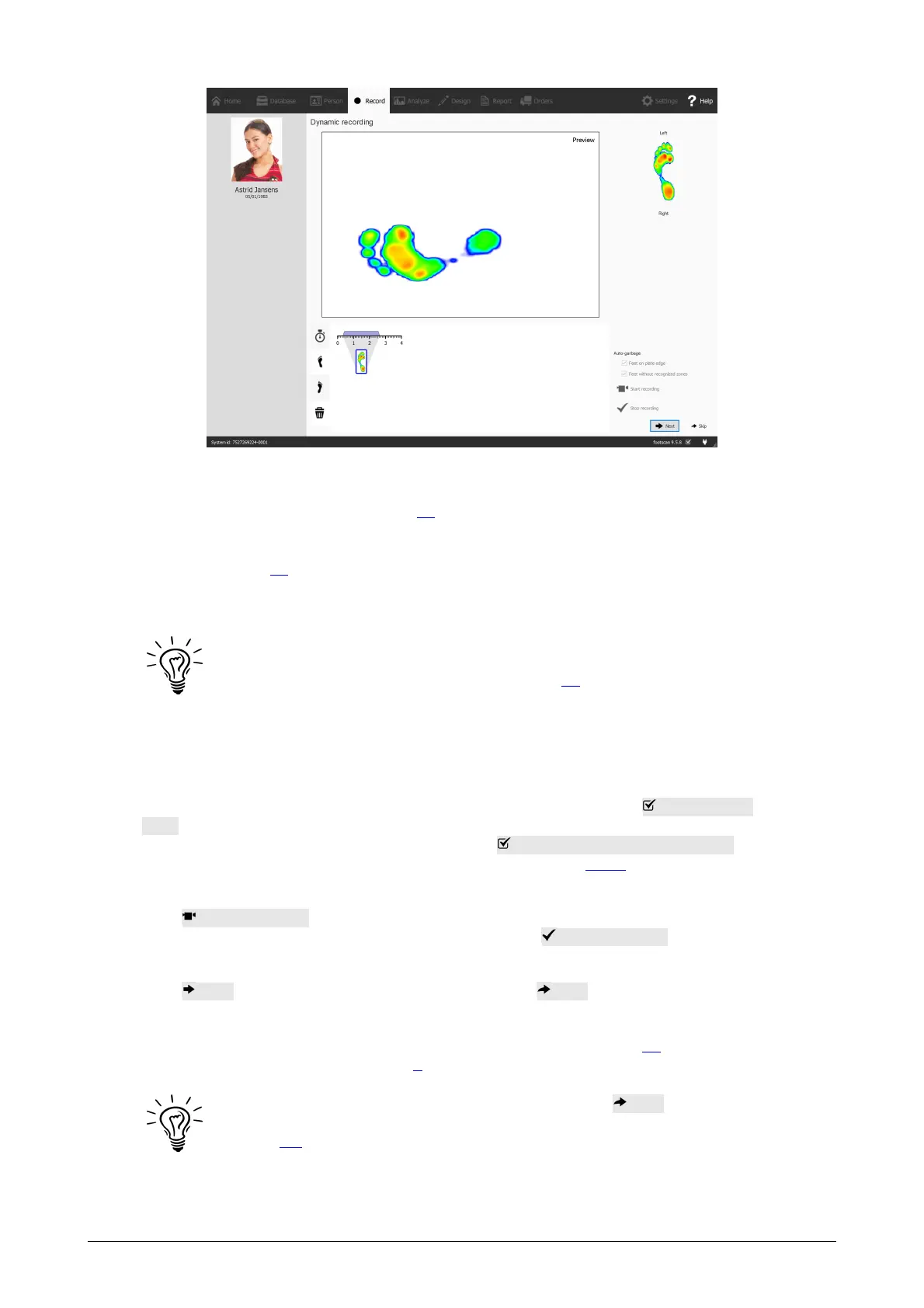 Click Start recording to start the dynamic recording. footscan 9 recognizes feet