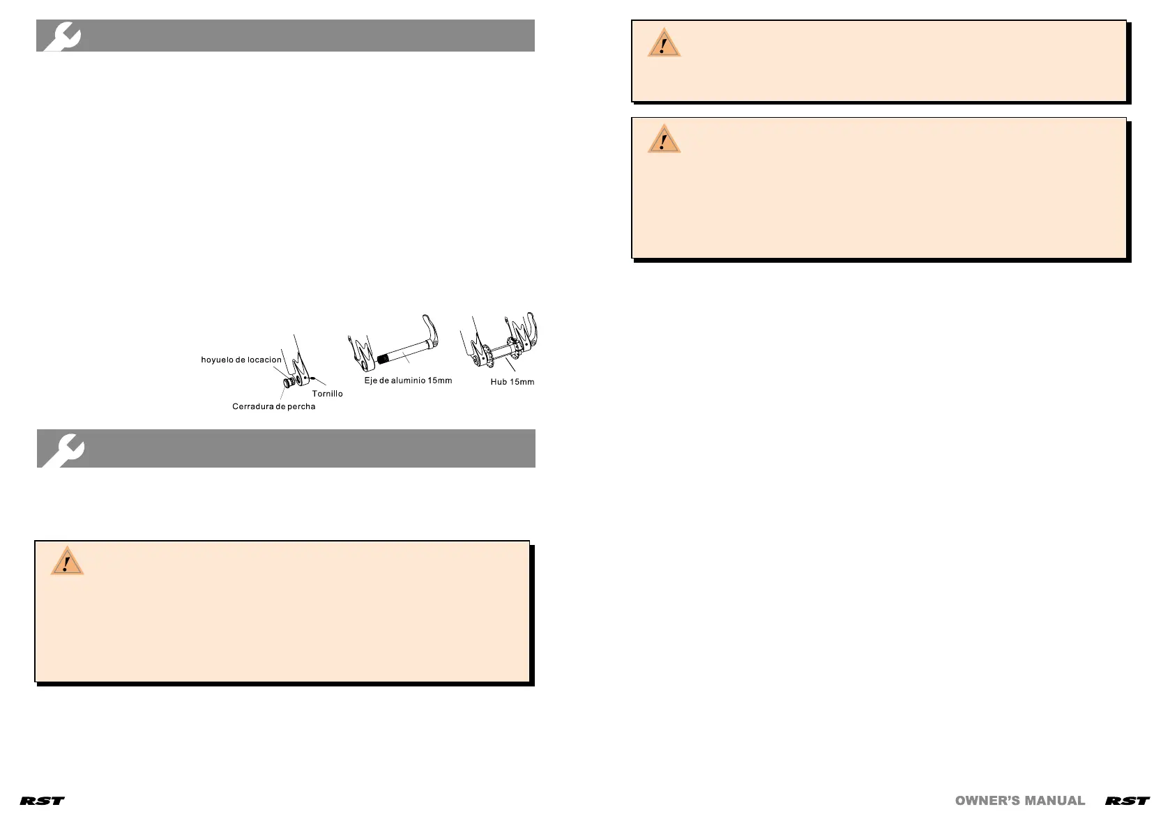 SPECIAL INSTRUCTION FOR 15MM QR AXLE INSTALLATION