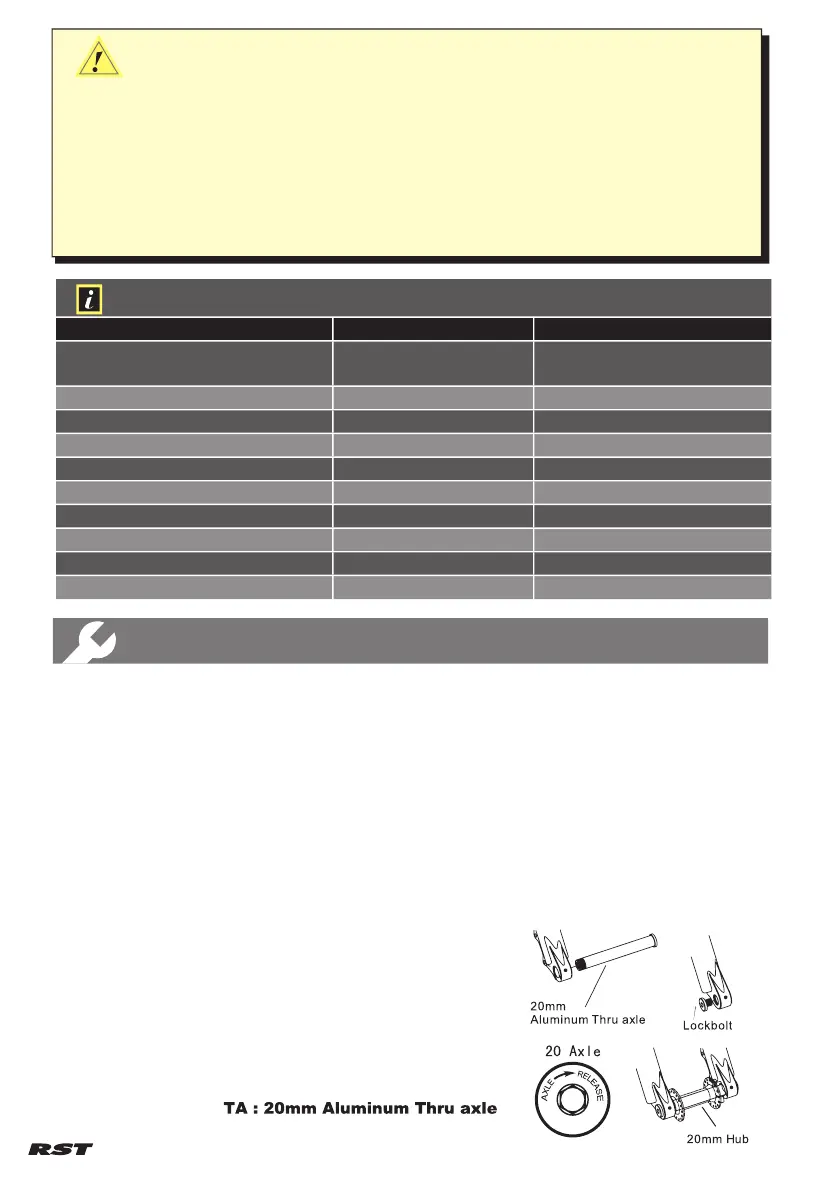 SPECIAL INSTRUCTION FOR 20MM HUB AND QR