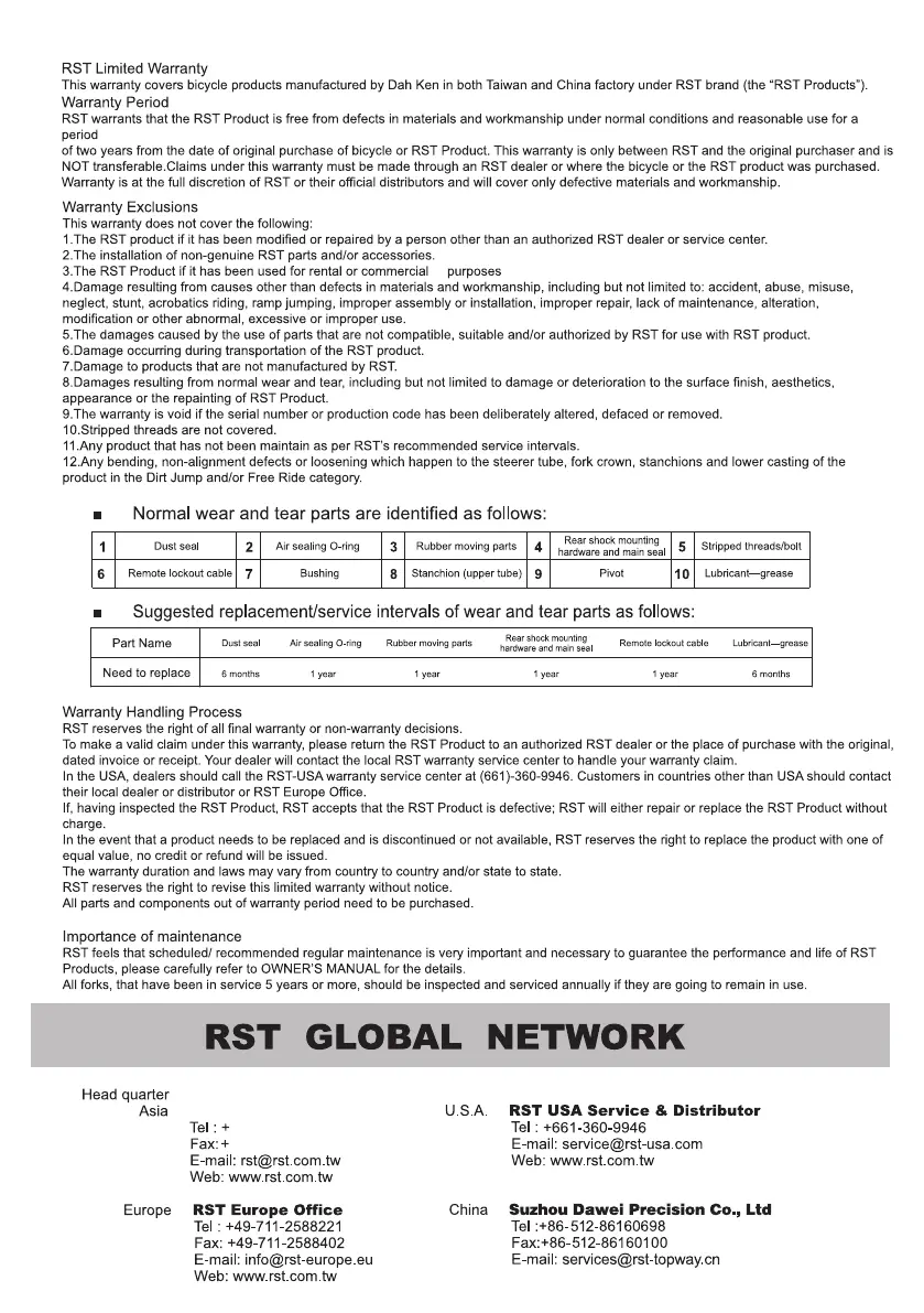 RST STITCH - RST Limited Warranty; Warranty Period; Warranty Exclusions